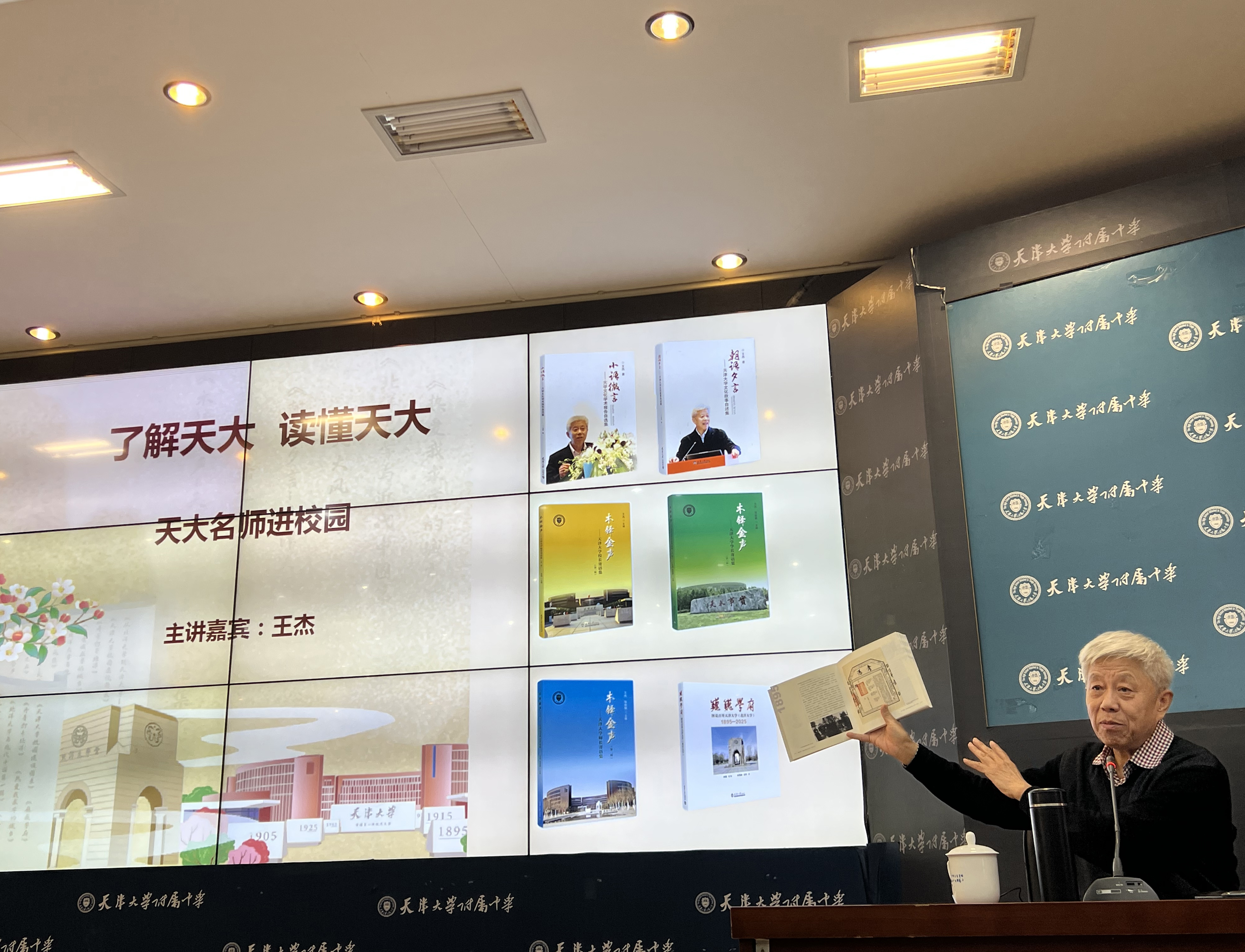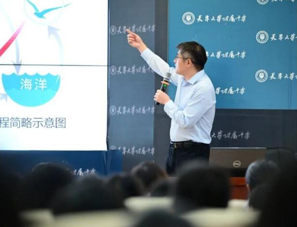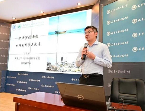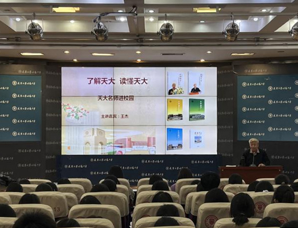 天津大学地球系统科学学院吴礼彬副教授以《大教授的小作文:写给未来科学家》为主线,为八年级学生带来题为《从西沙到南极——地理的科学与浪漫》的精彩讲座。而天津大学校史研究所名誉所长王杰教授则借《巍巍学府 图说百卅天津大学(北洋大学)》向高一年级学生讲述了天津大学的发展历程,阐释了“实事求是”校训的精神内核与一代代天大人的家国担当。
